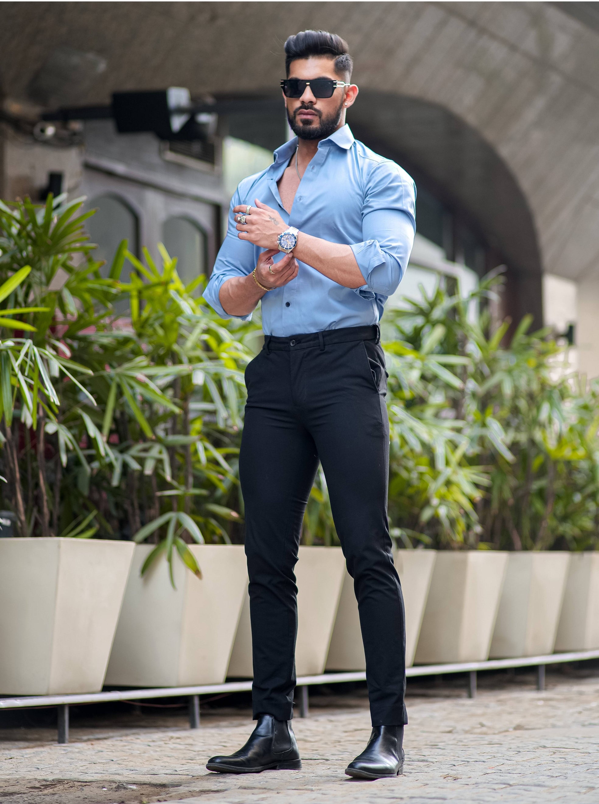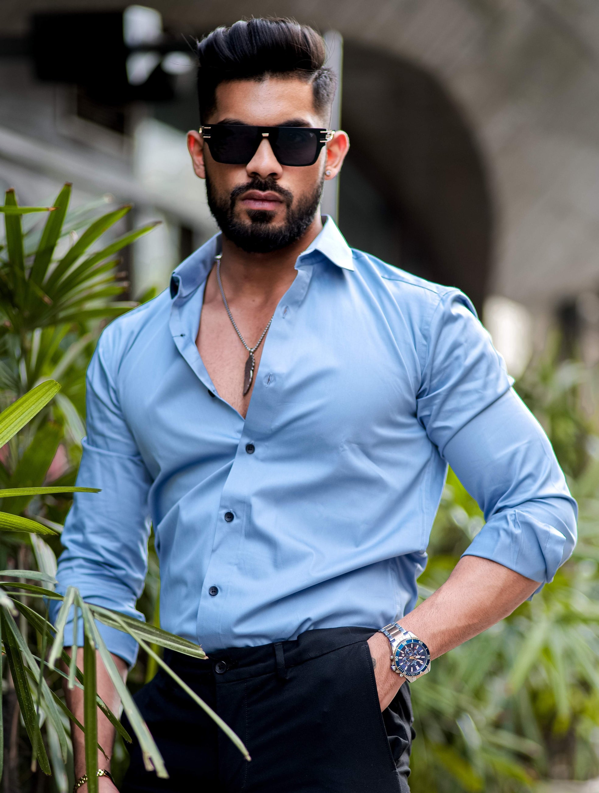 Formy Cool Blue Luxury Satin Cotton Shirt For Men's