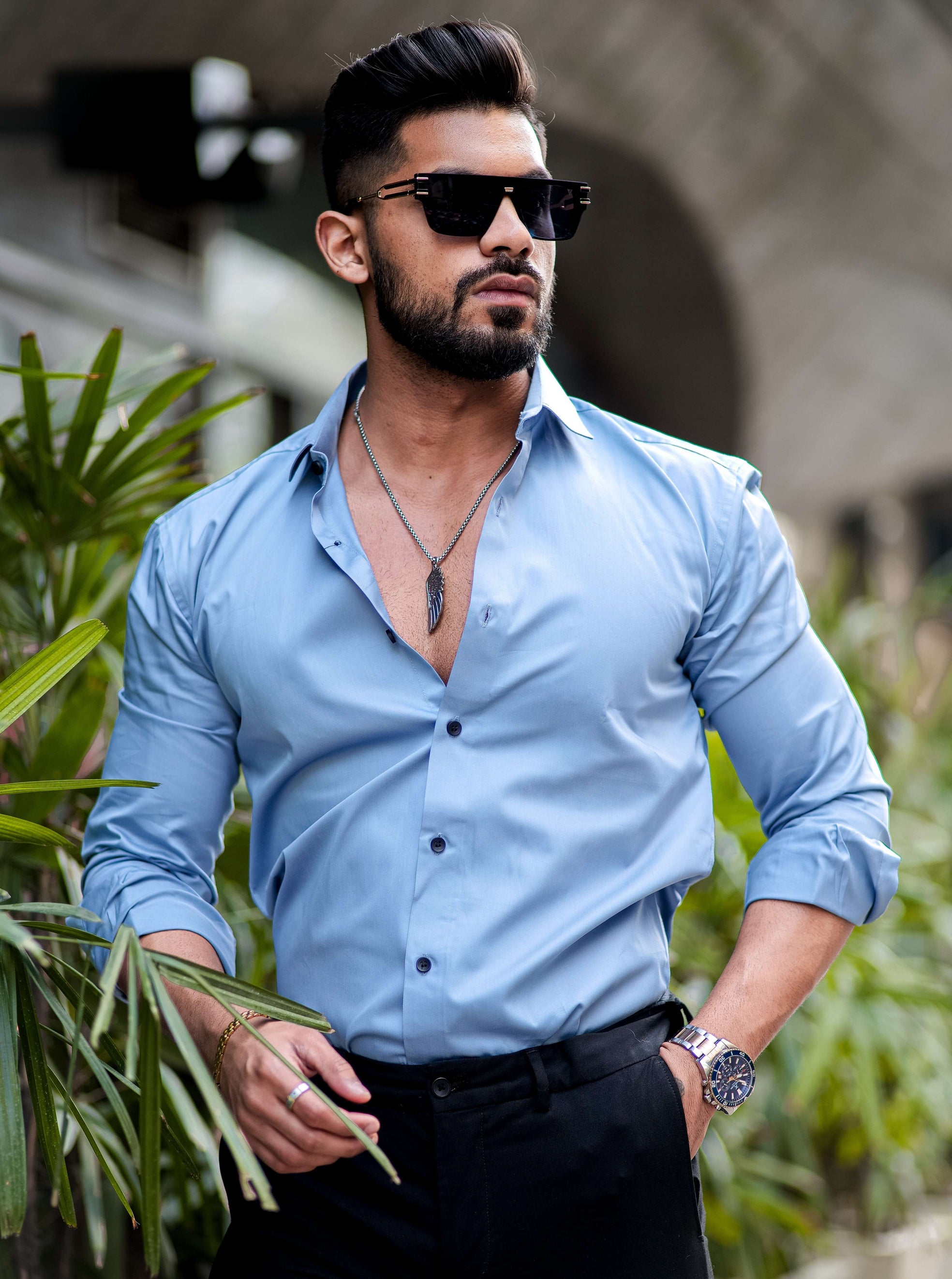 Formy Cloudy Blue Luxury Satin Cotton Shirt For Men's