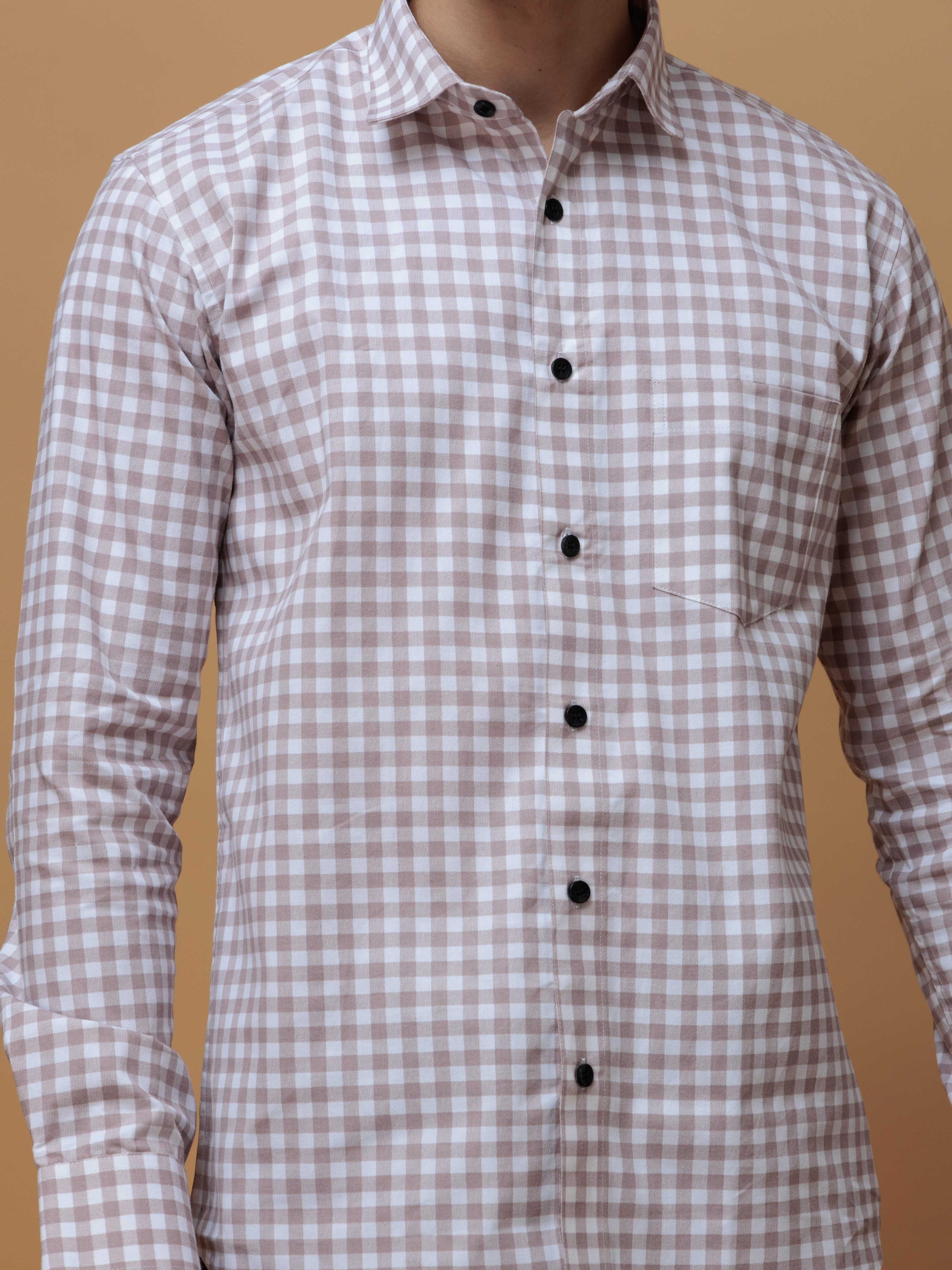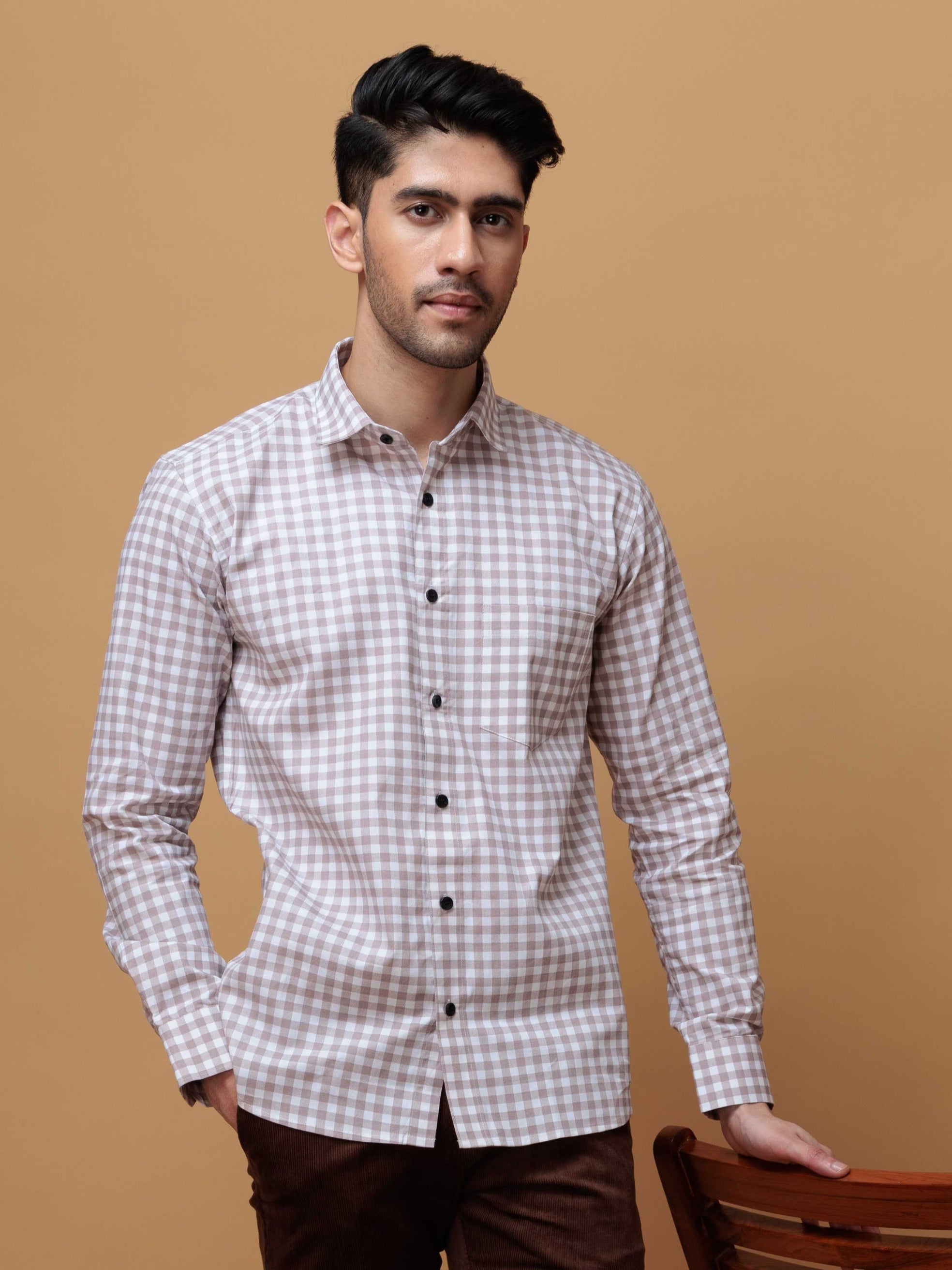 BROWN CHECKS PRINTED COTTON CASUAL SHIRT FOR MEN'S