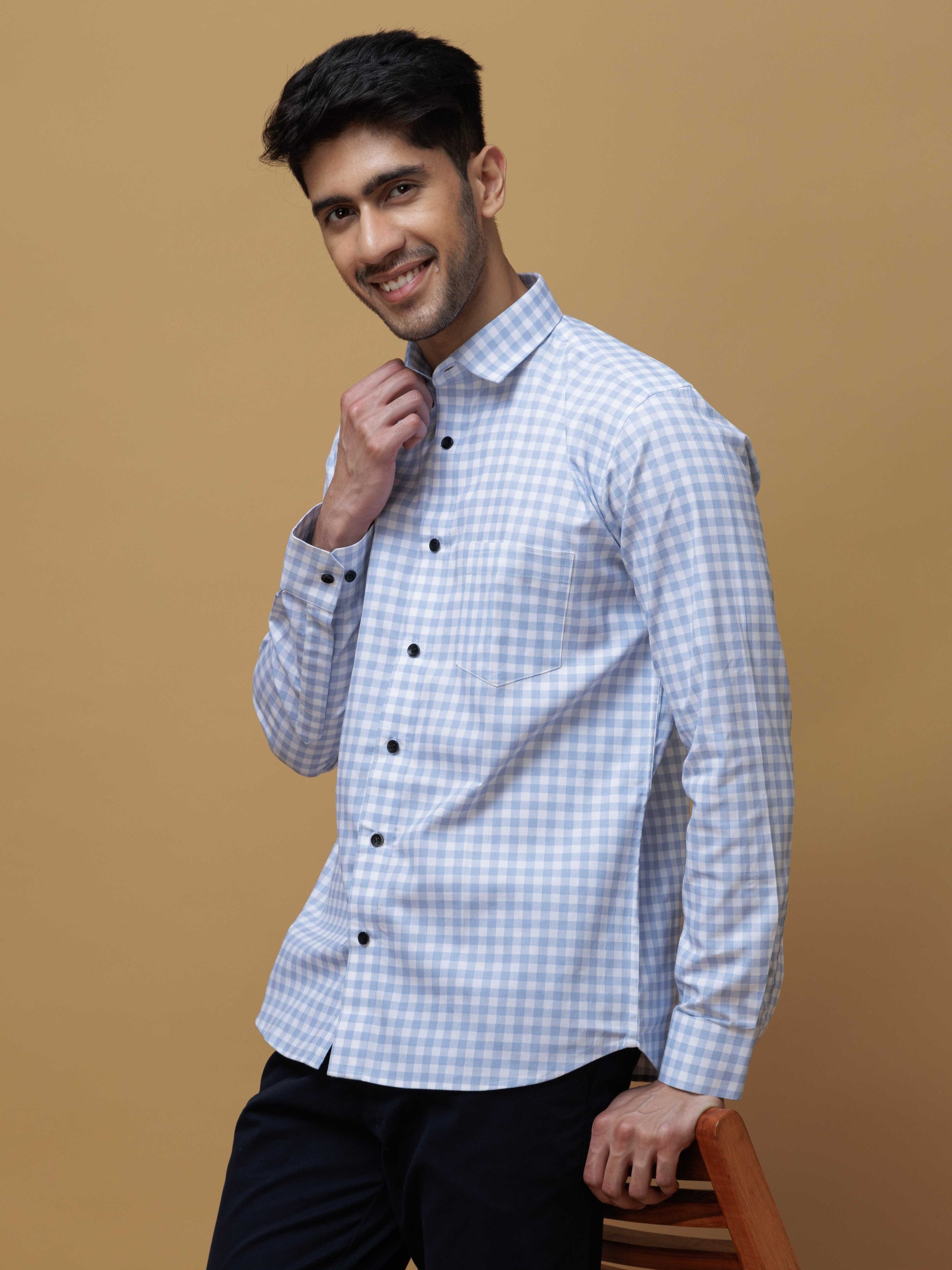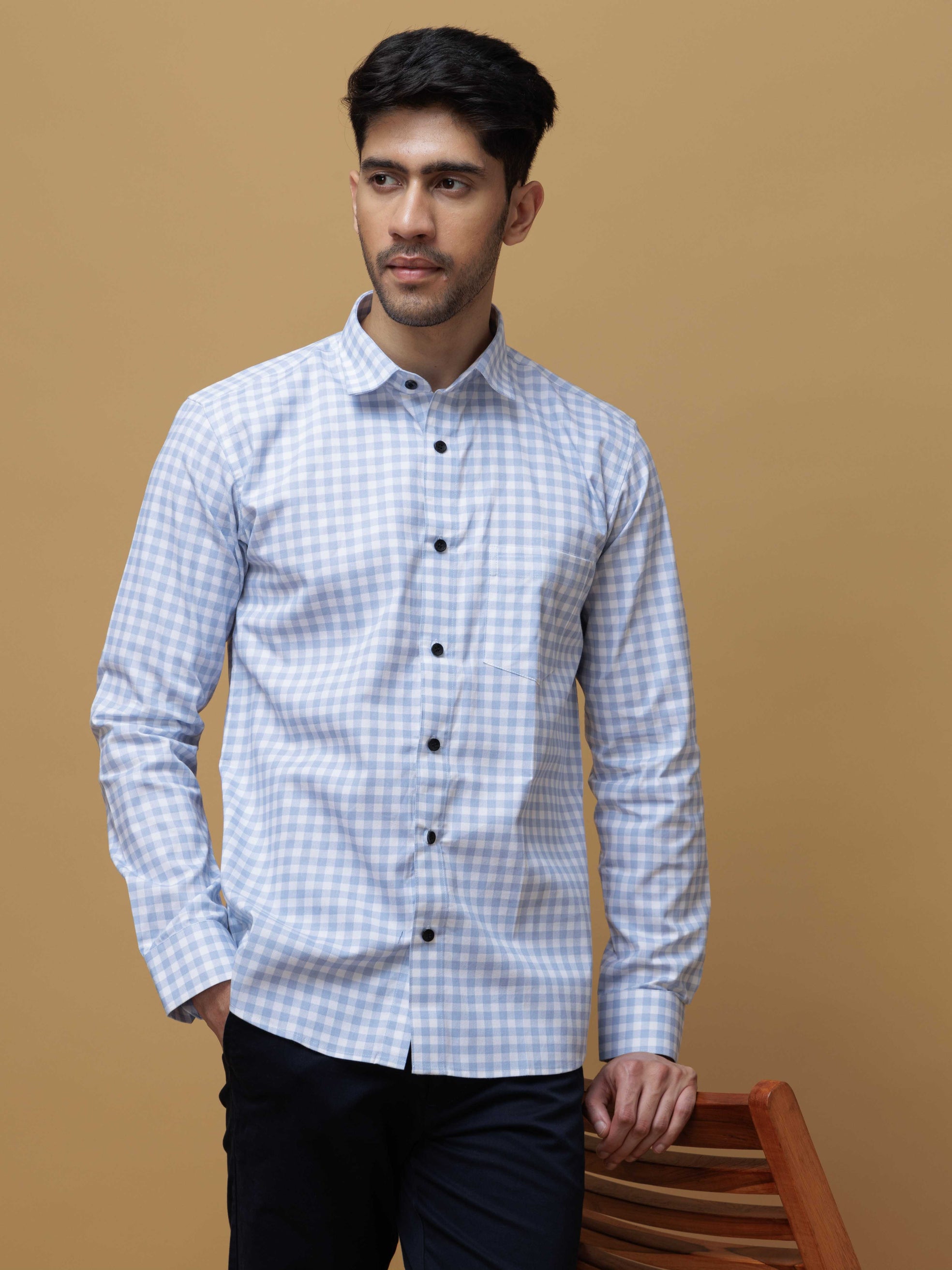 SKY CHECKERED PRINTED COTTON CASUAL SHIRT FOR MEN'S