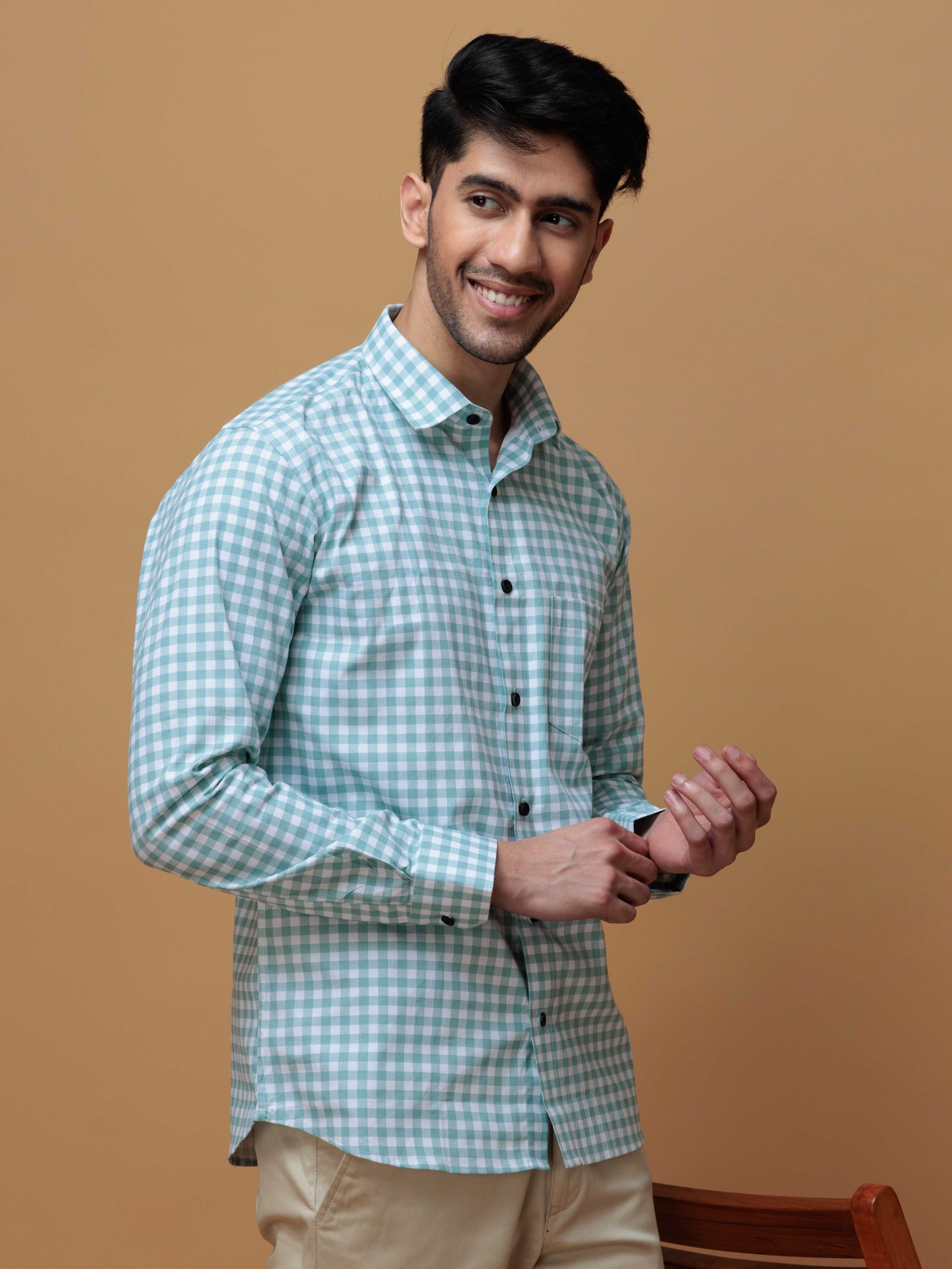 GREEN CHECKERED PRINTED COTTON CASUAL SHIRT FOR MEN'S