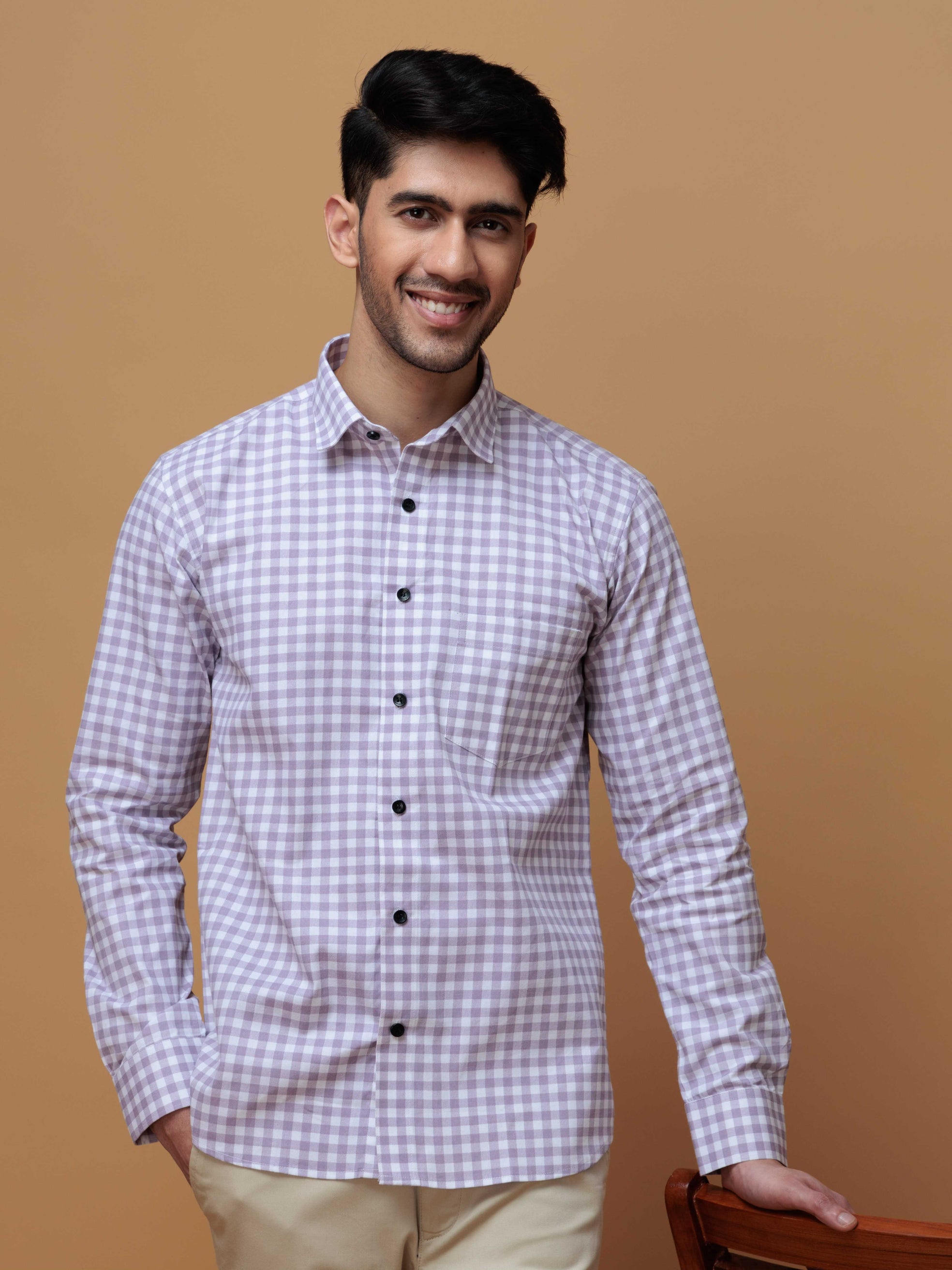 PURPLE CHECKERED PRINTED COTTON CASUAL SHIRT FOR MEN'S