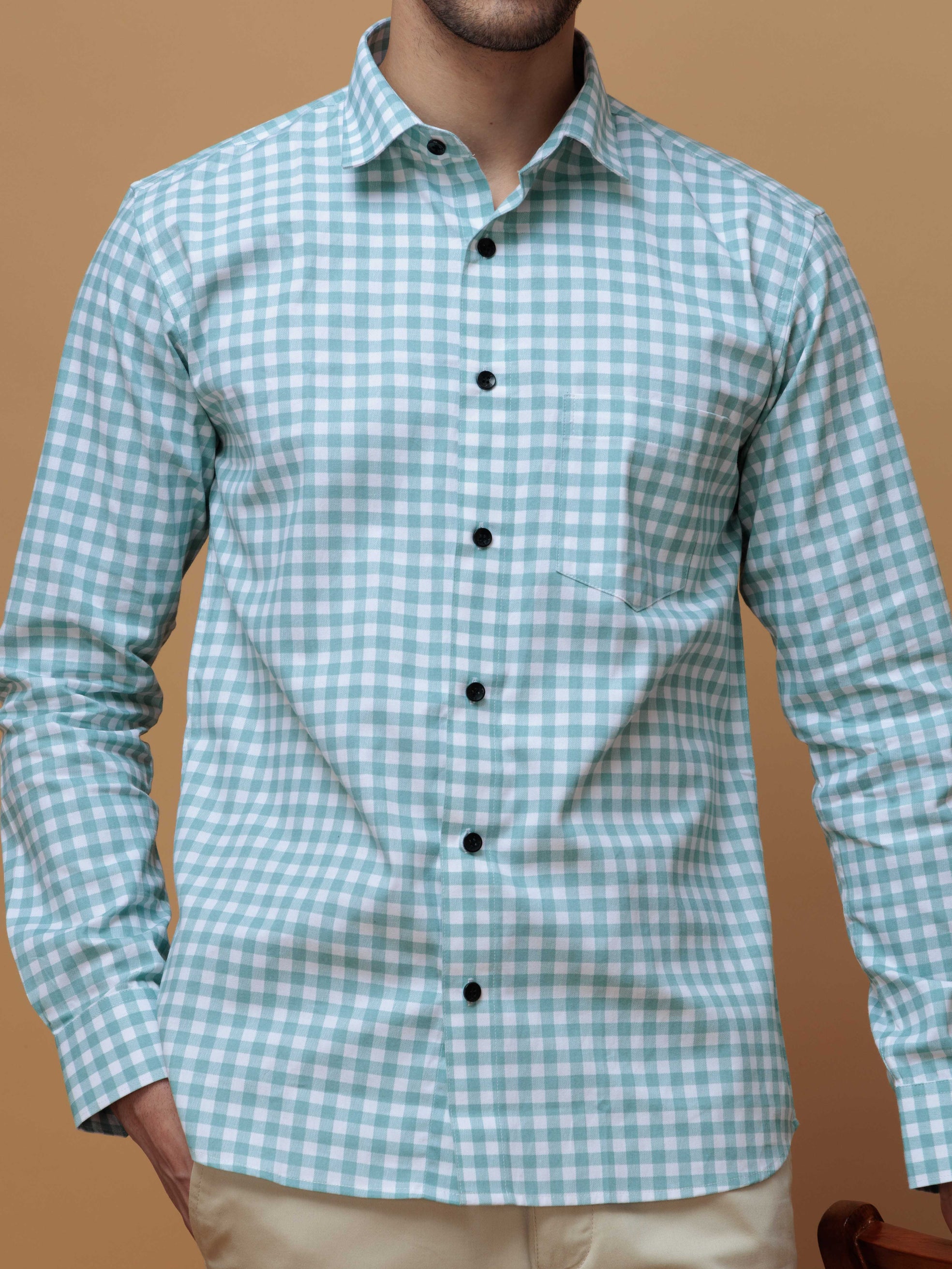 GREEN CHECKS PRINTED COTTON CASUAL SHIRT FOR MEN'S