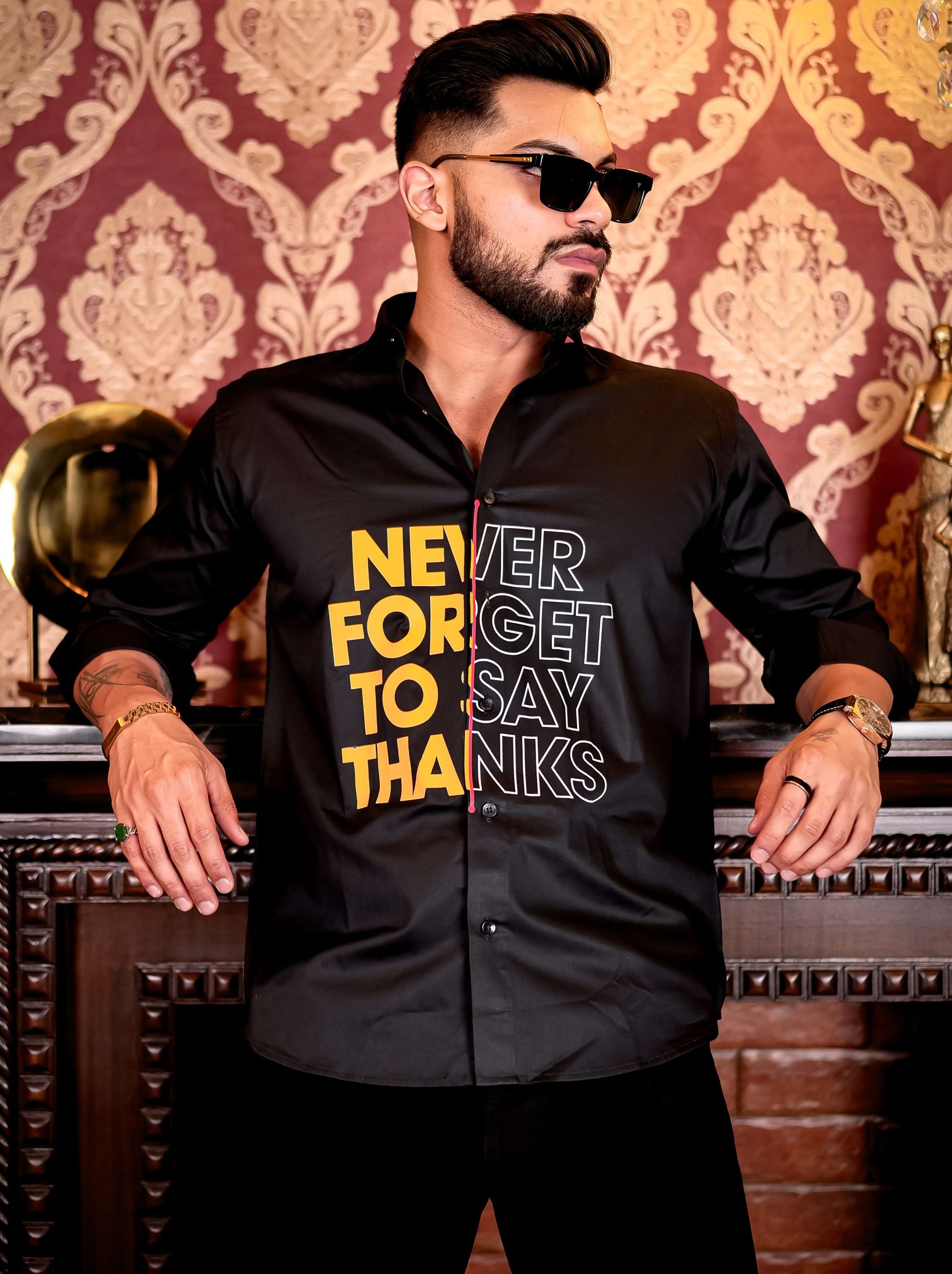 Say Thanks Black Club Wear Printed Satin Cotton Shirt